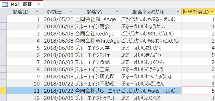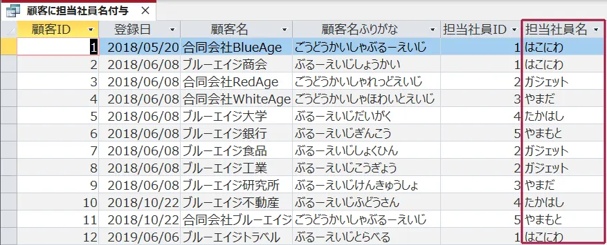これにより、MST_顧客の担当社員IDに紐づいた社員名が、MST_社員から参照されて表示されるのです。