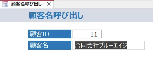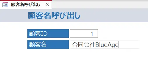 このように、顧客IDに数値を入力してエンターを押すと、顧客名に対象顧客の顧客名が表示されました。