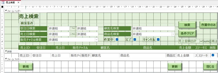 検索条件はフォーム上部の「フォームヘッダー」に作成します。