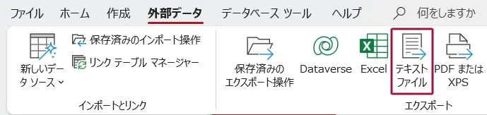 ACCESSを起動し、メニューバーから「外部データ」→「テキストファイル」を選択します。