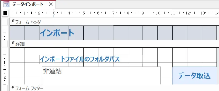 非連結のテキストボックスが中央にありますが、ここに取り込むファイルのフォルダパスを入力するためのコントロールです。