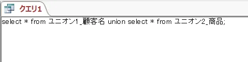 select * from ユニオン1_顧客名 union all select * from ユニオン2_商品;