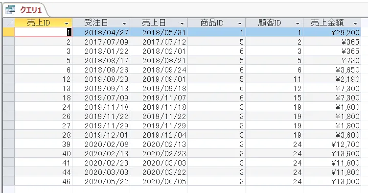 結果をデータシートビューで見てみましょう。