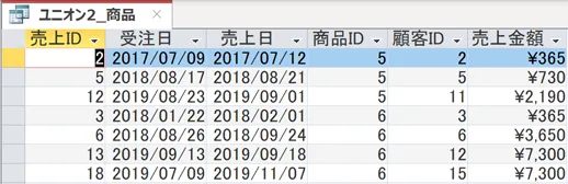 このように、2つのクエリで抽出されたレコードがまとめて表示されました。