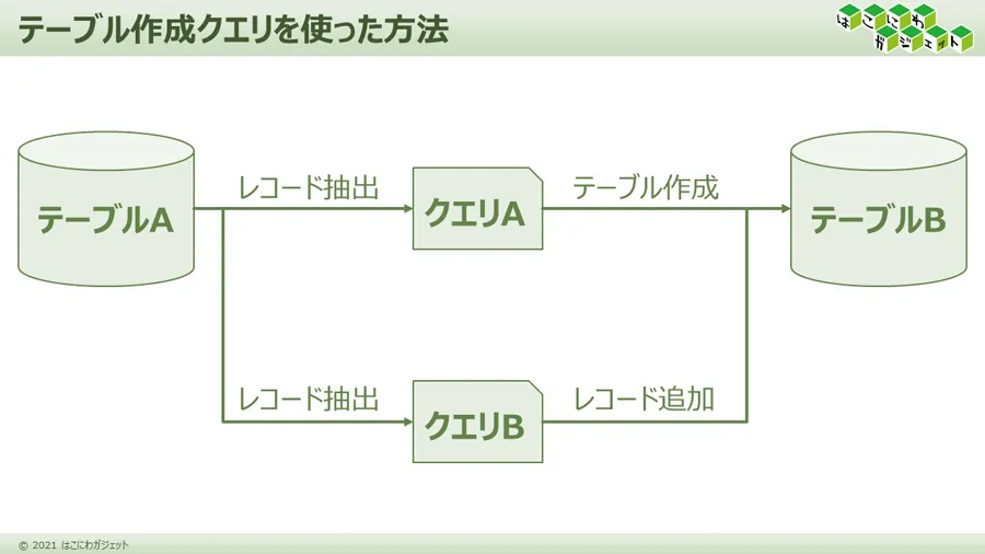 テーブル作成クエリとの違い