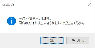 If vbOK = MsgBox("csvファイルを出力します。" & vbCrLf & "同名のファイルは上書きされますのでご注意ください。", vbInformation + vbOKCancel, "csv出力") Then