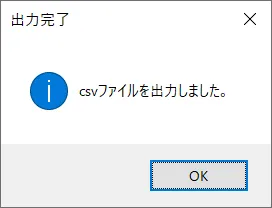 OKを押すと出力処理がされ、処理完了メッセージが表示されます。