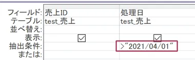 そのため、処理日という日付型のデータを抽出する条件として、テキスト(文字列)を指定しているので抽出条件でデータ型が一致しない、となるのです。