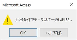 ACCESSでクエリを作成している際、「抽出条件でデータ型が一致しません」と表示されたことはないでしょうか。