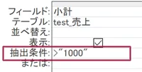 小計フィールドは数値型データですので、抽出条件も数値型にしましょう。