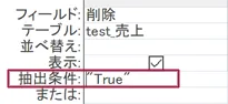 Yes/No型のフィールドの抽出条件は「True」「False」で指定します。