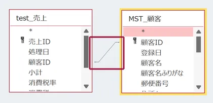上記の例でいうと、test_売上テーブルの顧客IDとMST_顧客テーブルの顧客IDが同じものを指していることが示されています。
