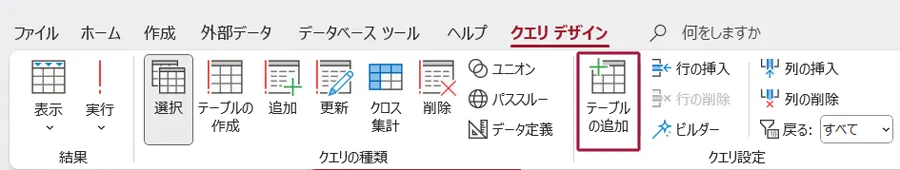 | 追加クエリ | クエリの結果を特定のテーブルにレコードとして追加する |