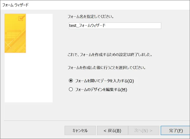 ある程度フォーム作成に慣れてくると、ウィザードではなくフォームデザインで作成することも多くなるでしょう。