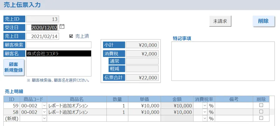入力用のフォームを作成することで効率よくデータ入力が可能です。