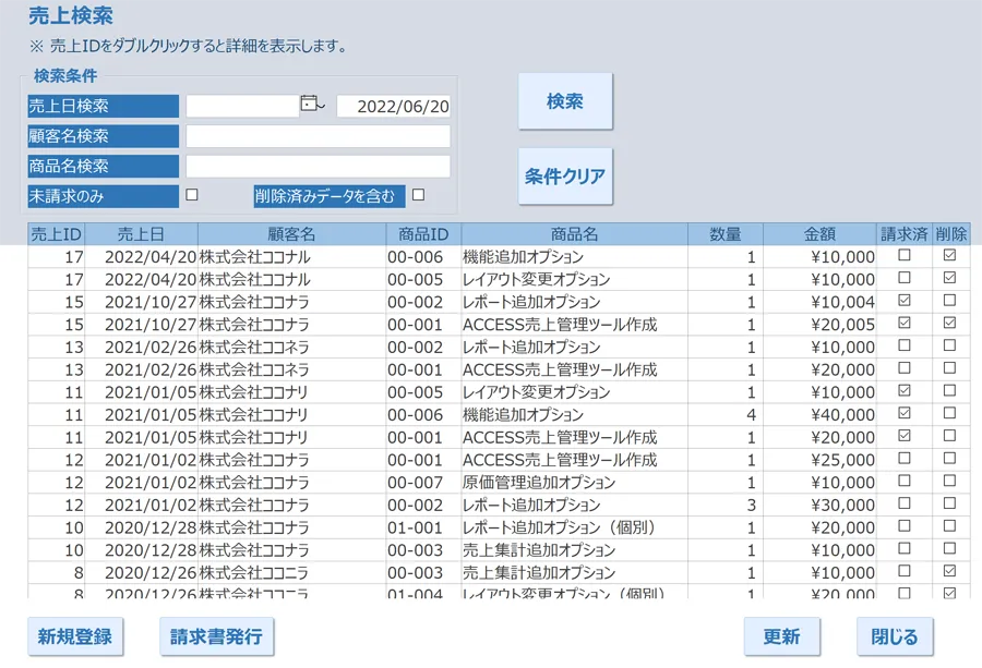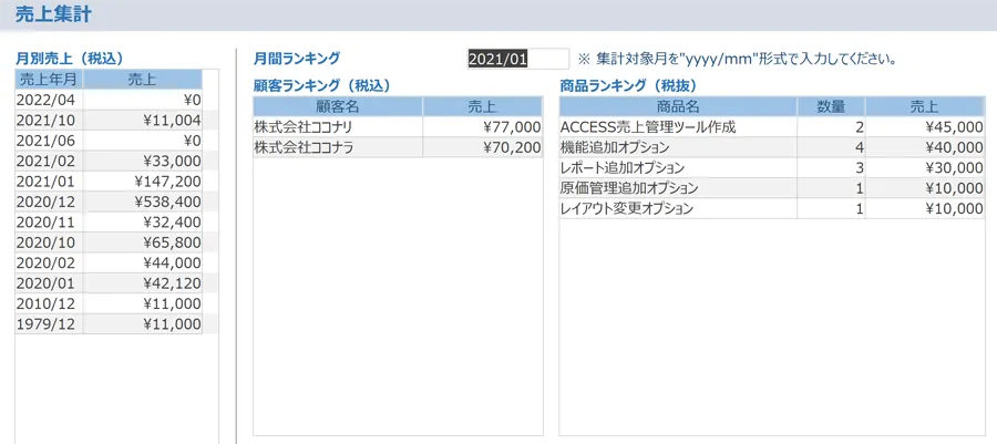 ACCESSを使った売上管理、顧客管理などのデータベース開発を行っています。