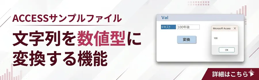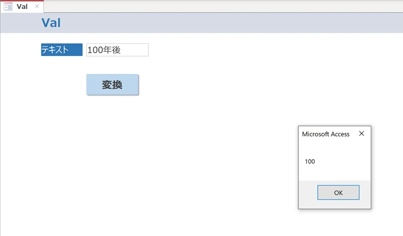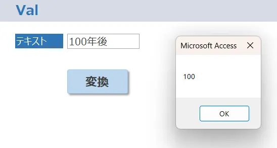 | Val ( ”100年後” ) | 数値を含むテキスト型データを変換 | 100 |