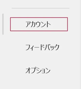 ACCESSのファイルメニューから「アカウント」を選択します。