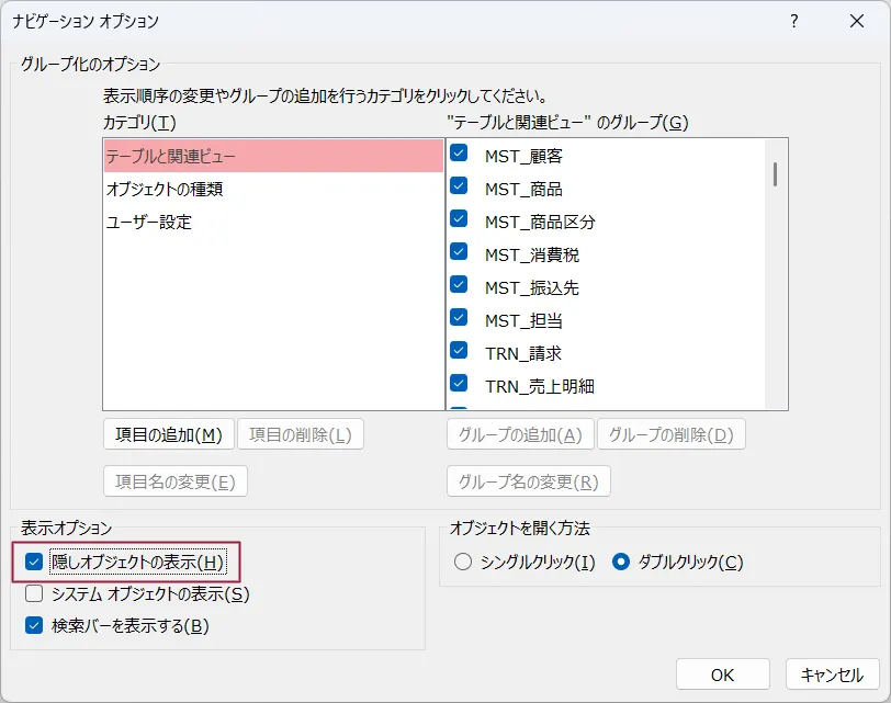 今回は、表示されないテーブルやクエリを再表示する方法をご紹介します。