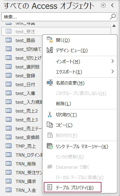 このテーブルをACCESSのナビゲーションウィンドウで探してみます。
