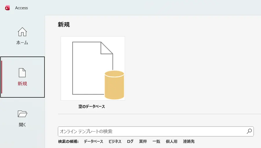 ACCESSを立ち上げ、新規から空のデータベースを作成しましょう。