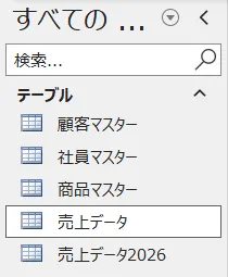 売上データと売上データ2026という2つのテーブルがあります。