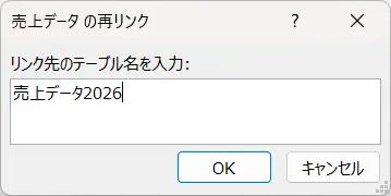 そして、リンク先のテーブル名を変更する売上データの画面で、リンク先のテーブル名を「売上データ2026」に変更します。