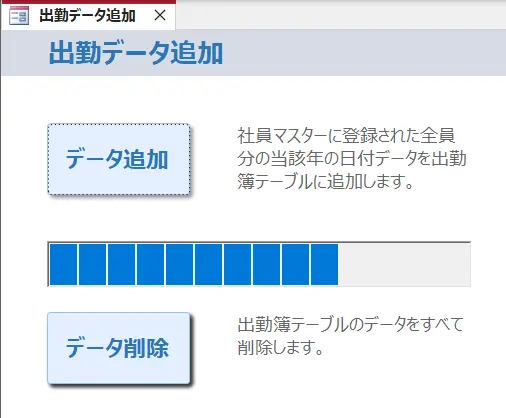 このボタンを押すことでデータ追加処理が開始され、プログレスバーが表示されます。