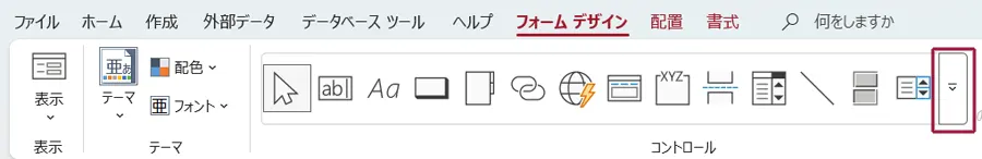 ACCESSのメニューから「フォームデザイン」タブを選択します。