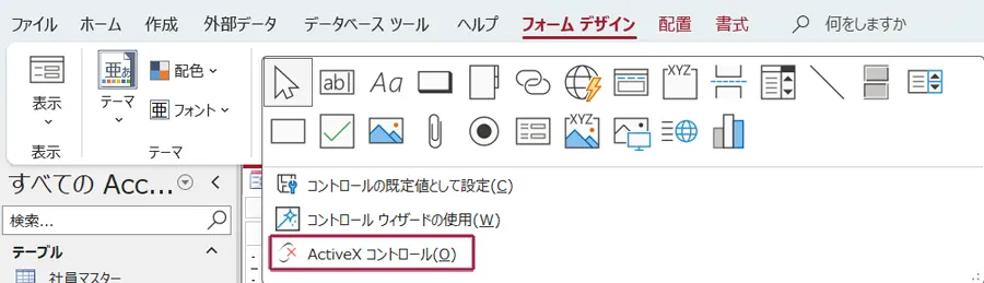 一番下にActiveXコントロールが表示されますのでクリックします。