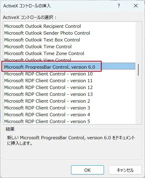 ActiveXコントロールの挿入画面が表示されます。