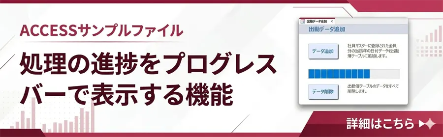 ここでは、ループ処理の中でレコード追加処理を行うたびに進捗バーの値を1ずつ増加させています。