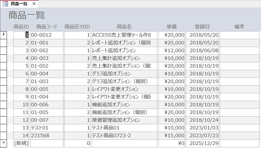 本記事の内容を実際にACCESSを動かしながら確認したいという方向けに、記事で紹介した機能が実装されたサンプルファイルを販売しています。記事内で解説しているテーブル、クエリ、フォーム、レポート、VBAのプロシージャなどをそのまま動く形で実装しました。